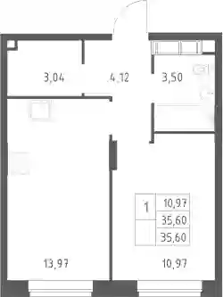 7 977 016 ₽1-к.квартира, 35.61 м², 20 эт.
