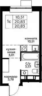 5 300 012 ₽Студия, 21.26 м², 7 эт.