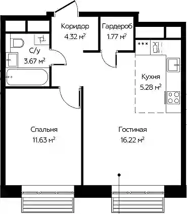 7 370 370 ₽2-к.квартира, 41.72 м², 22 эт.