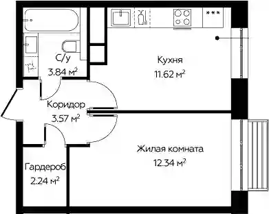 6 363 213 ₽1-к.квартира, 35.61 м², 21 эт.