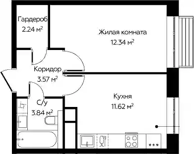 6 363 213 ₽1-к.квартира, 35.61 м², 21 эт.