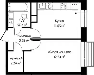 6 363 213 ₽1-к.квартира, 35.61 м², 21 эт.