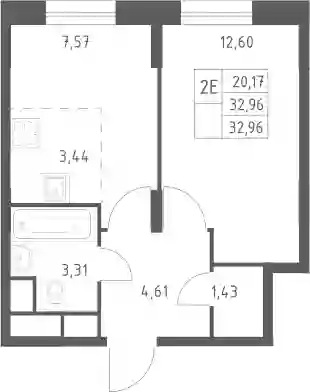 2-к.квартира, 32.96 м², 22 эт. в ЖК Новоград Павлино Корпус 9