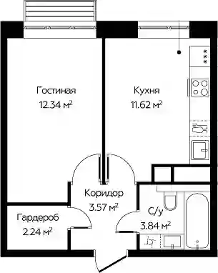 5 950 920 ₽Студия, 21.26 м², 18 эт.