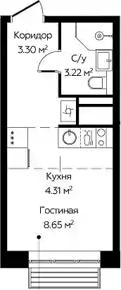5 221 588 ₽Студия, 21.3 м², 11 эт.
