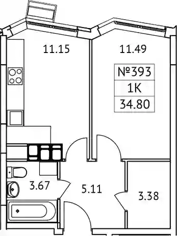 8 455 792 ₽1-к.квартира, 34.87 м², 11 эт.