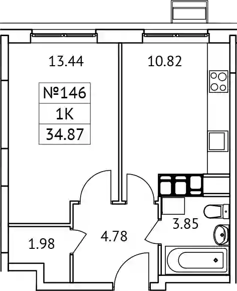 8 455 792 ₽1-к.квартира, 34.87 м², 15 эт.
