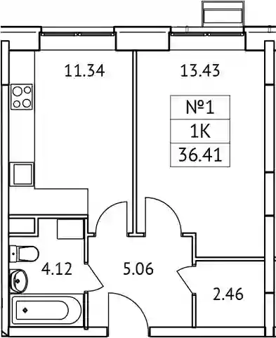 1-к.квартира, 36.41 м², 2 эт. в ЖК Новотомилино Корпус 5