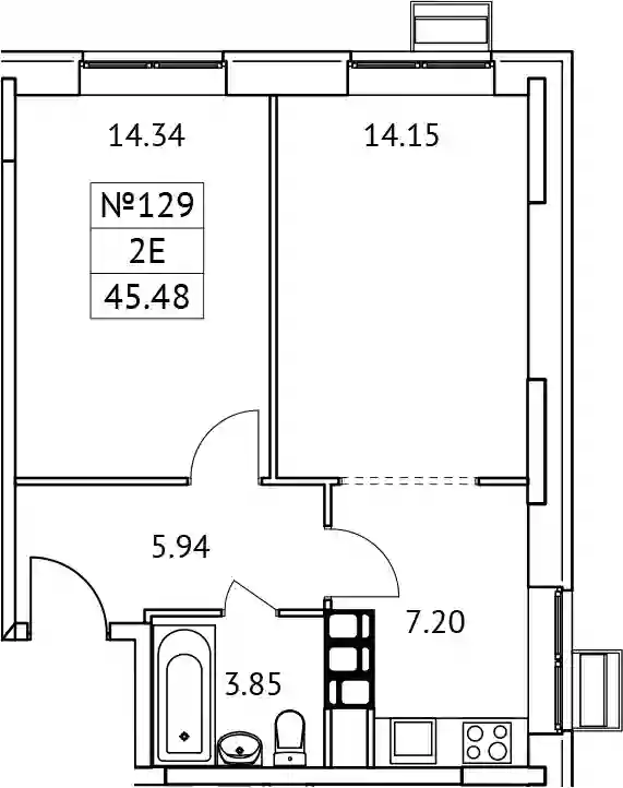 2-к.квартира, 45.48 м², 10 эт. в ЖК Новотомилино Корпус 5