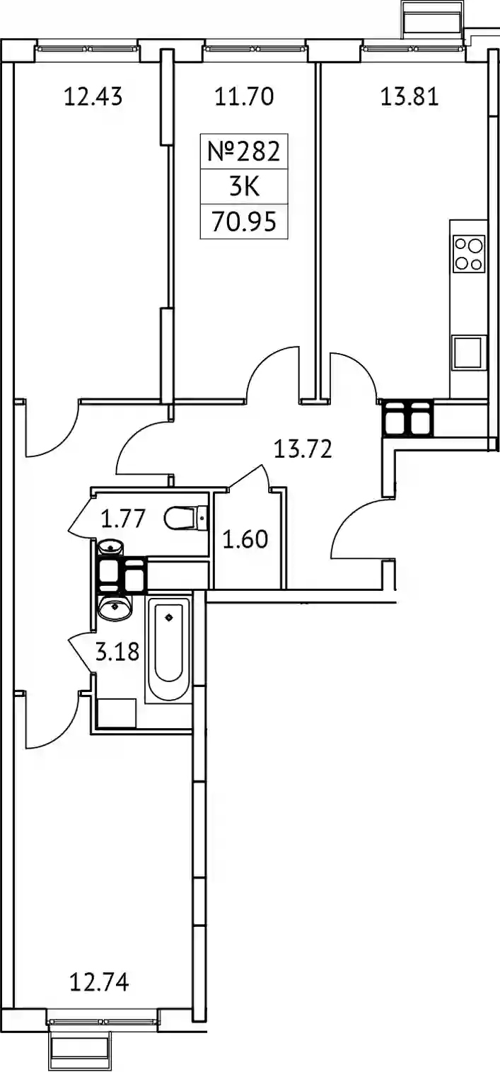 10 818 145 ₽3-к.квартира, 70.45 м², 13 эт.