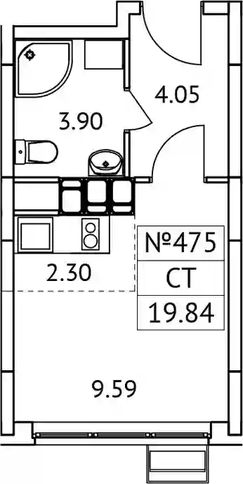 Студия, 19.84 м², 13 эт. в ЖК Новотомилино Корпус 5