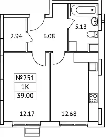 8 564 800 ₽2-к.квартира, 39.67 м², 13 эт.