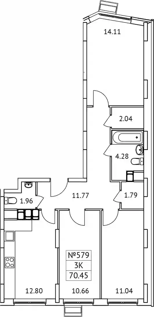 12 960 000 ₽3-к.квартира, 70.95 м², 14 эт.