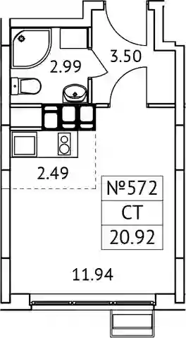5 938 800 ₽Студия, 22.82 м², 12 эт.