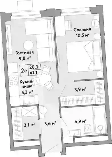 2-к.квартира, 41.1 м², 25 эт. в ЖК Новые Смыслы Корпус 1