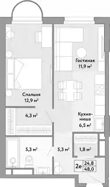 2-к.квартира, 48 м², 5 эт. в ЖК Новые Смыслы Корпус 1