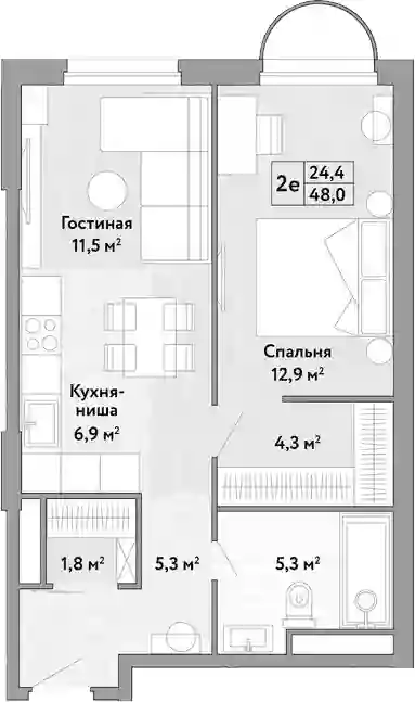 2-к.квартира, 48 м², 6 эт. в ЖК Новые Смыслы Корпус 1