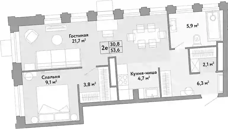 53.6 м2