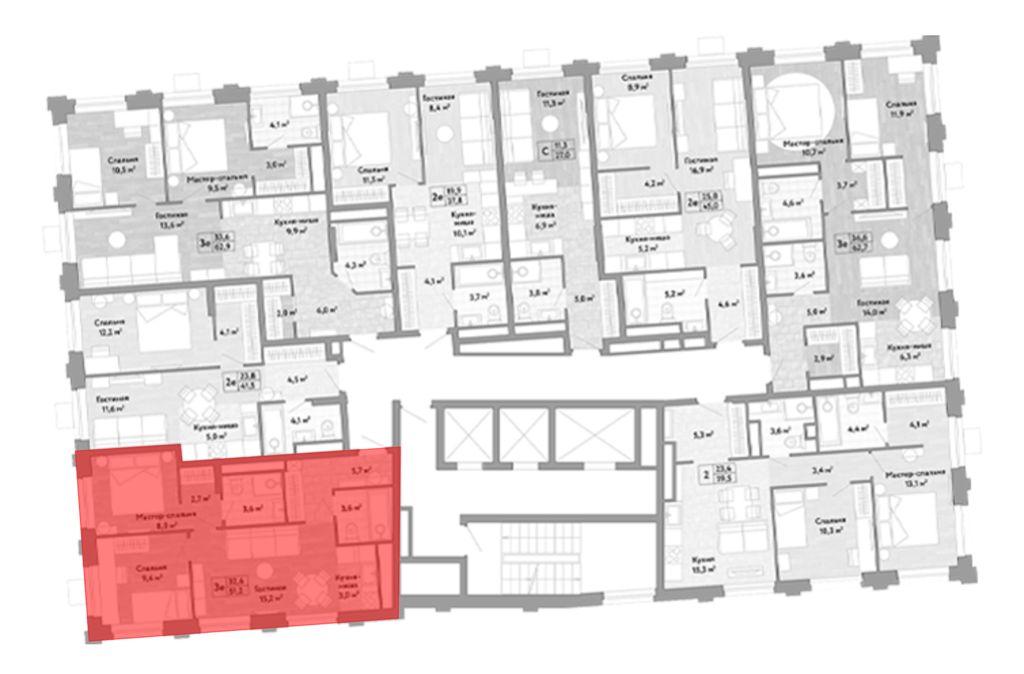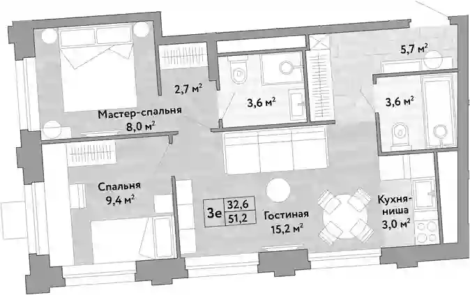 3-к.квартира, 51.2 м², 26 эт. в ЖК Новые Смыслы Корпус 1