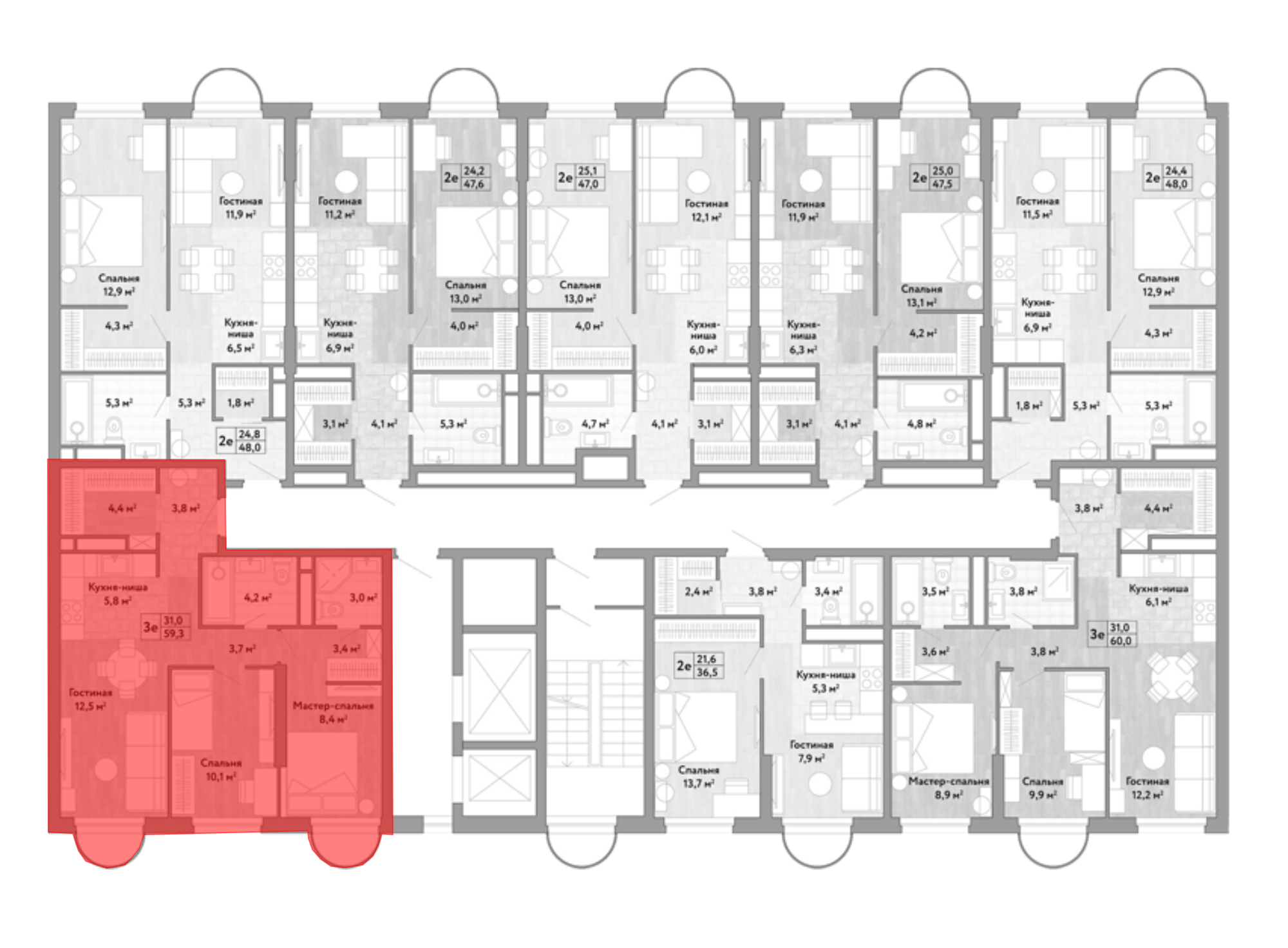 В жилом комплексе предложено более 200 вариантов планировок. Здесь есть квартиры с гардеробными, мастер-спальнями, окном в ванной, прачечной, а также квартиры с 5 окнами в кухне-гостиной и кабинетом. Высота потолков варьируется от 3 до 3,7 метра. На выбор предлагаются квартиры без отделки, с подчистовой отделкой UniBox и двумя вариантами чистовой отделки: UniLoft и UniDesign. Из увеличенных окон открывается живописный вид на реку и парк.