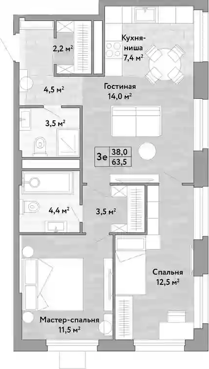 63.5 м2