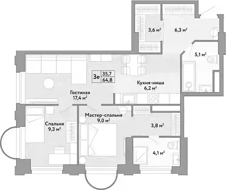 3-к.квартира, 64.8 м², 5 эт. в ЖК Новые Смыслы Корпус 1