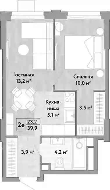 2-к.квартира, 39.9 м², 15 эт. в ЖК Новые Смыслы Корпус 2