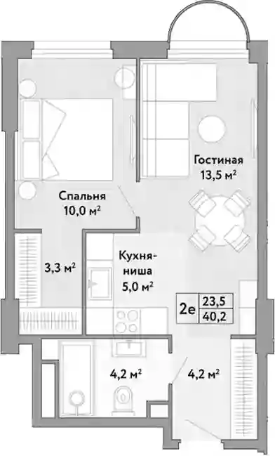 2-к.квартира, 40.2 м², 4 эт. в ЖК Новые Смыслы Корпус 2