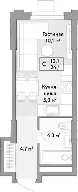 Студия, 24.1 м², 18 эт. в ЖК Новые Смыслы Корпус 2