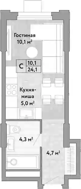 Студия, 24.1 м², 20 эт. в ЖК Новые Смыслы Корпус 2