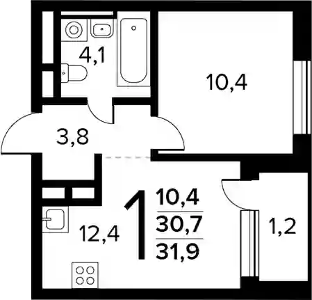 10 258 400 ₽1-к.квартира, 31.2 м², 12 эт.