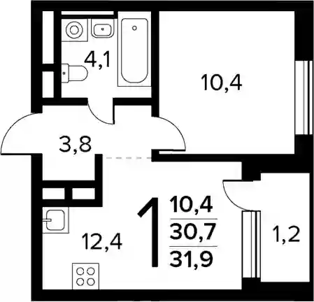 10 258 400 ₽1-к.квартира, 31.2 м², 12 эт.