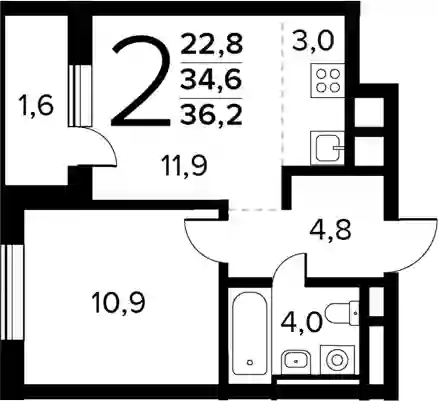 10 477 000 ₽2-к.квартира, 34.3 м², 11 эт.