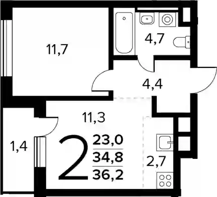 2-к.квартира, 34.8 м², 1 эт. в ЖК Новые Ватутинки мкрн. Заречный Корпус 6/1