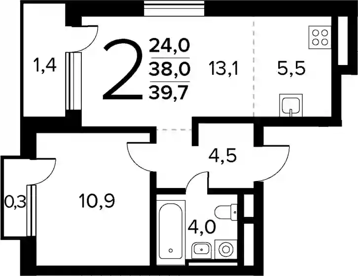 11 124 000 ₽2-к.квартира, 39.6 м², 9 эт.