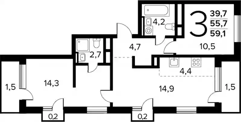 14 716 700 ₽3-к.квартира, 59 м², 13 эт.