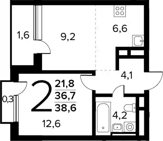 9 790 200 ₽2-к.квартира, 36 м², 2 эт.