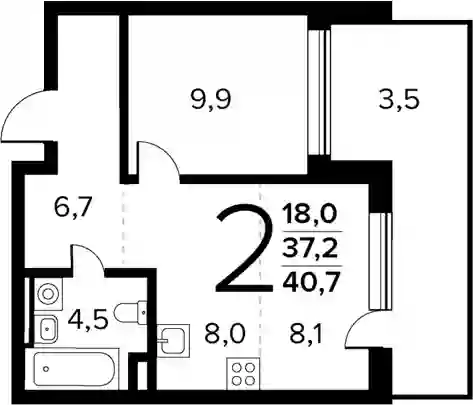 2-к.квартира, 37.2 м², 1 эт. в ЖК Новые Ватутинки мкрн. Заречный Корпус 6/2