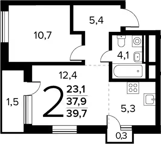 11 945 000 ₽2-к.квартира, 39.7 м², 4 эт.