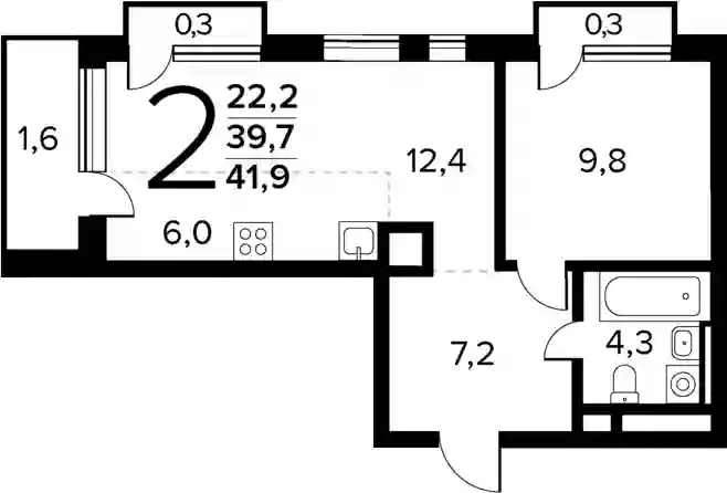 11 772 900 ₽2-к.квартира, 41.4 м², 2 эт.