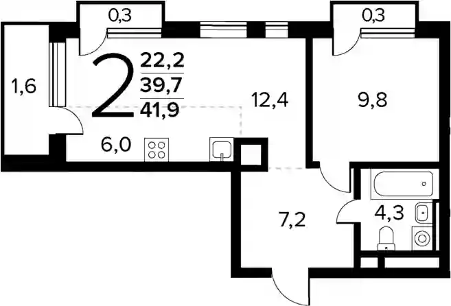 2-к.квартира, 39.7 м², 6 эт. в ЖК Новые Ватутинки мкрн. Заречный Корпус 6/2