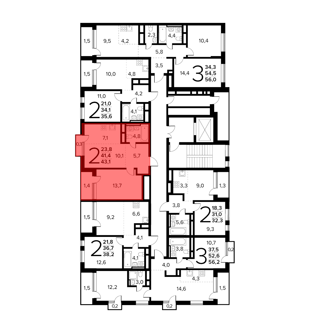 2-к.квартира, 42.2 м², 6 эт. в ЖК Новые Ватутинки мкрн. Заречный Корпус 6/2