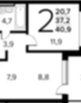 13 686 000 ₽2-к.квартира, 40.3 м², 1 эт.