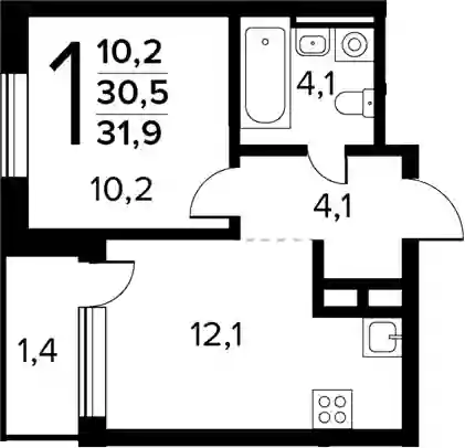 10 258 400 ₽1-к.квартира, 31.2 м², 12 эт.
