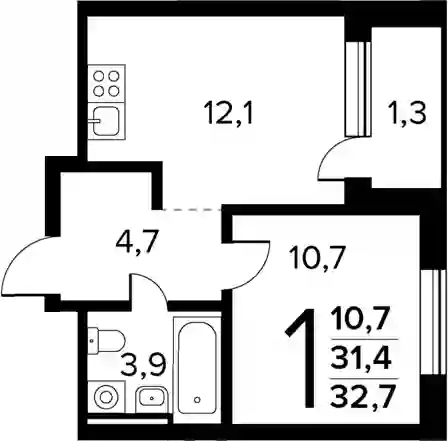 11 922 400 ₽1-к.квартира, 32.7 м², 1 эт.