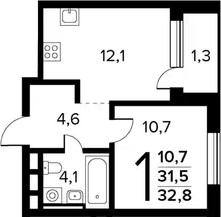 10 258 400 ₽1-к.квартира, 31.2 м², 12 эт.
