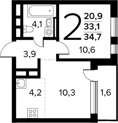 11 341 000 ₽2-к.квартира, 34.1 м², 1 эт.