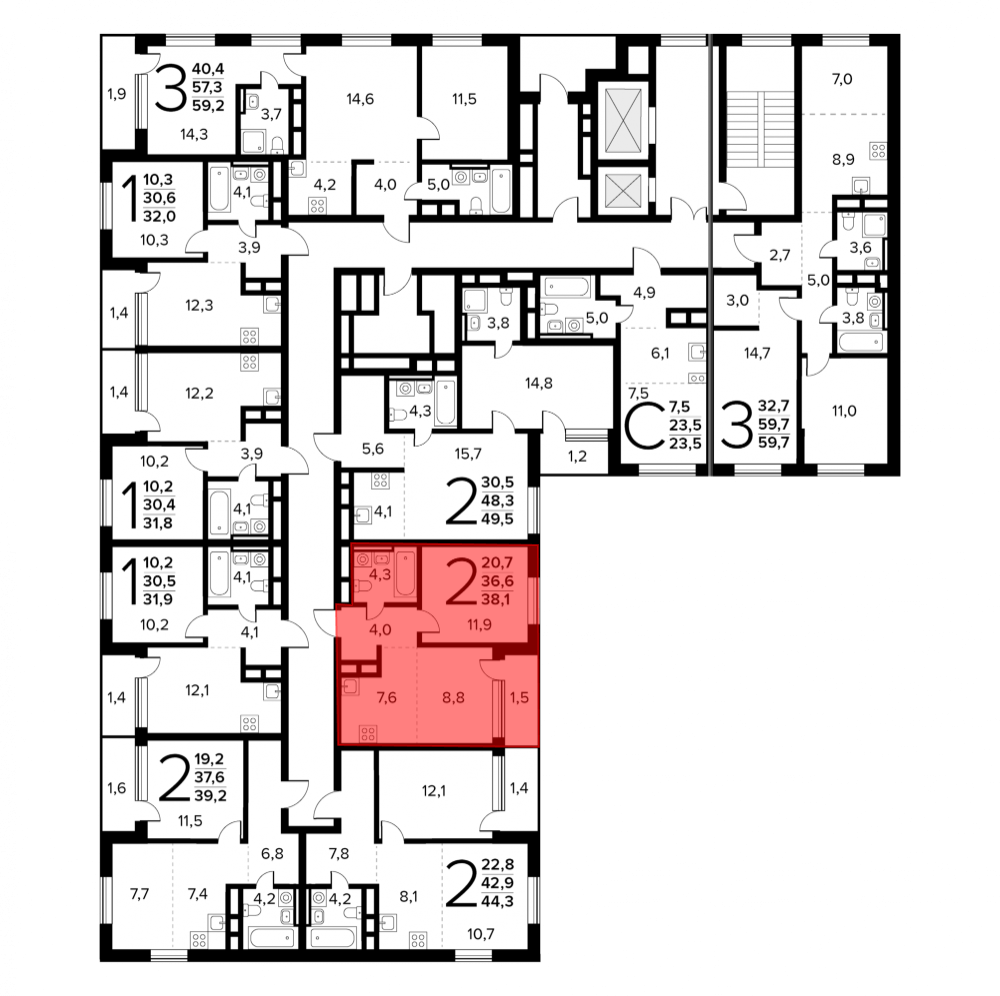 10 939 300 ₽2-к.квартира, 37.9 м², 8 эт.