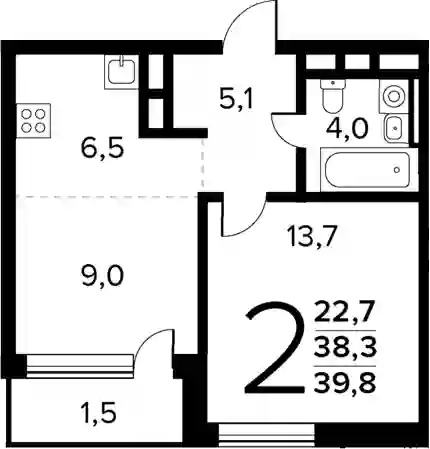 11 124 000 ₽2-к.квартира, 39.6 м², 9 эт.