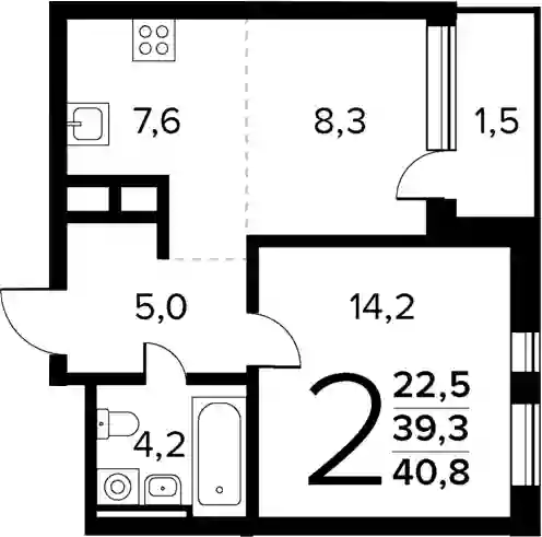 11 772 900 ₽2-к.квартира, 41.4 м², 2 эт.